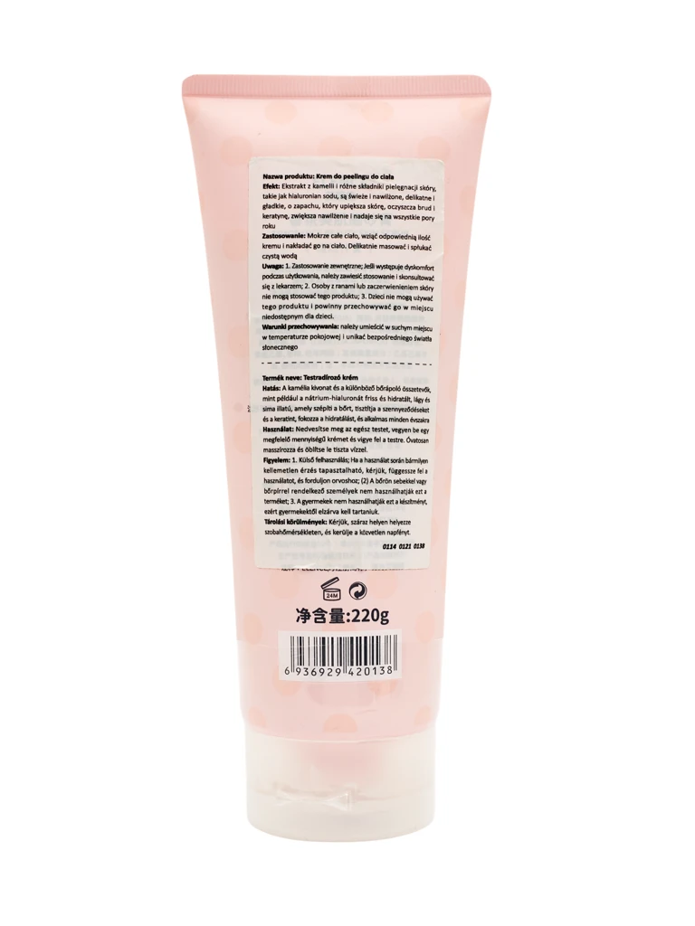 - Скраб для тіла ELENCE з екстрактом камелії та гіалуроновою кислотою – зволожує, вирівнює, освіжає.