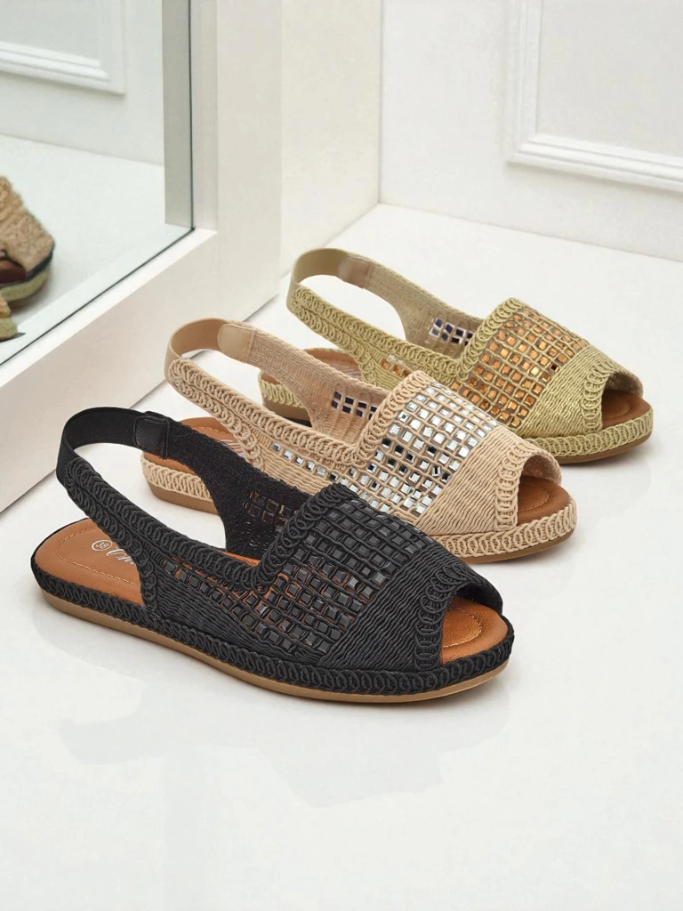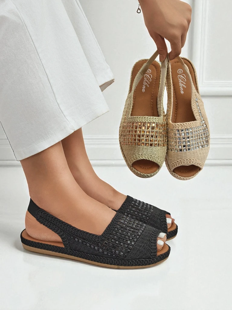 • Стильні жіночі еспадрильї з тканини, з м'якою устілкою з екошкіри. Еластична вставка на п’ятці забезпечує зручну посадку, а блискучі камінці додають елегантності. Ідеальний вибір для літніх днів – комфорт і шик в одному!