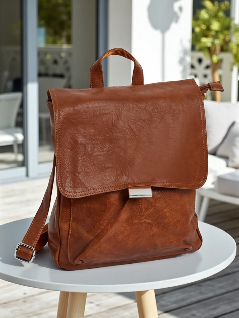 - Стильний жіночий рюкзак з екошкіри. Застібається на блискавку та магніт. Одне основне відділення, три практичні кишеньки. Регульовані ремінці забезпечують комфорт носіння. Ідеальний для повсякденного використання та для роботи.