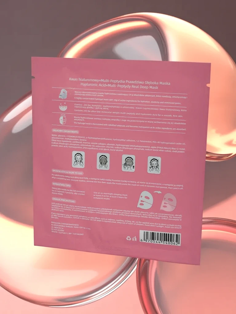 Маска для обличчя LUXELUX Calista Real Deep створена для глибокого зволоження, регенерації та покращення еластичності шкіри. Виготовлена з ультрам'якого гідрогелевого матеріалу, вона ідеально адаптується до контурів обличчя, забезпечуючи рівномірне вбирання активних інгредієнтів. Виробляється відповідно до сучасних косметичних стандартів, з дотриманням високої чистоти та безпеки. Склад маски базується на гіалуроновій кислоті – речовині, що цінується в косметології за здатність інтенсивно зволожувати та розгладжувати епідерміс. Додатково формула посилена комплексом багаторівневих пептидів, які підтримують природний захисний бар'єр шкіри, стимулюють виробництво колагену та ефективно мінімізують видимість зморшок. У складі ви знайдете, зокрема: гліцерин, бутиленгліколь, бета-глюкан, гіалуронат натрію, пептиди, екстракт алое та лимонну кислоту. Завдяки такому вдало підібраному активному складу маска приносить ефект миттєвого заспокоєння, зменшує почервоніння та помітно покращує напругу та гладкість шкіри. - Глибоке зволоження та ретельна регенерація шкіри - Розгладження дрібних ліній і зморшок - Заспокоєння подразнень та підтримка у боротьбі з пересушуванням - Вирівнювання кольору та покращення еластичності епідермісу 1. Маска ідеально підійде як швидке SPA перед важливим виходом – додайте легкий макіяж та блиск для губ, щоб отримати ефект сяючої шкіри. 2. Поєднайте її з мінімалістичним стилем casual (біла футболка та джинси), щоб підкреслити здоровий, доглянутий вигляд шкіри на кожен день. 3. Використовуйте її ввечері перед побаченням зі стильною сукнею та делікатними аксесуарами – шкіра стане ідеальною базою під макіяж. Маску зберігайте в прохолодному та затіненому місці. Рекомендується наносити на очищену шкіру обличчя, залишити на 20-25 хвилин, а після зняття обережно вбити залишки сироватки. Уникайте контакту з очима. Зберігайте подалі від прямих сонячних променів, при кімнатній температурі. Маски на основі гіалуронової кислоти та пептидів – абсолютний хіт серед тих, хто піклується про сучасний, ефективний догляд за обличчям. В даний час особливий акцент робиться на сильне зволоження, відновлення гідроліпідного бар'єру та комфорт шкіри, що ідеально вписується в щоденну рутину beauty та вечірні ритуали догляду.