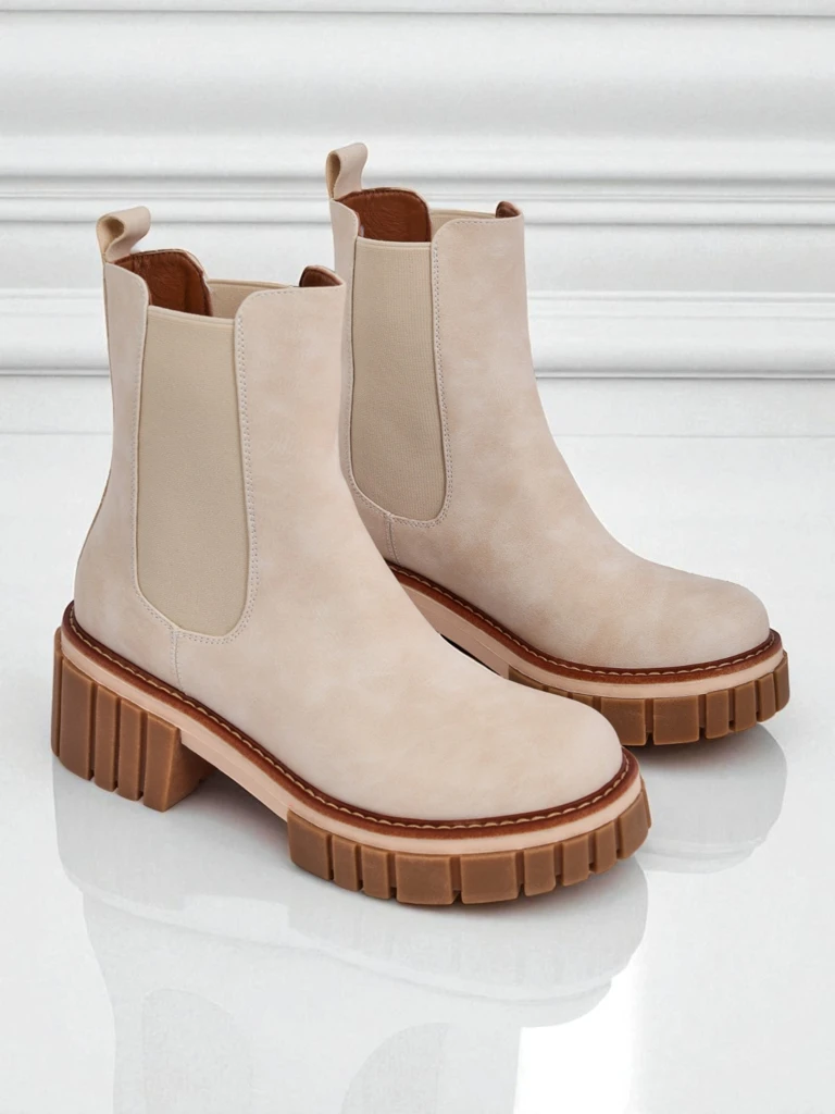 В даний час масивні підошви та виразні стовпчики є одним з найважливіших осінніх трендів, а класичний бежевий колір робить ці ботки універсальною пропозицією для кожної жінки, яка цінує комфорт, стиль та актуальні модні тенденції.