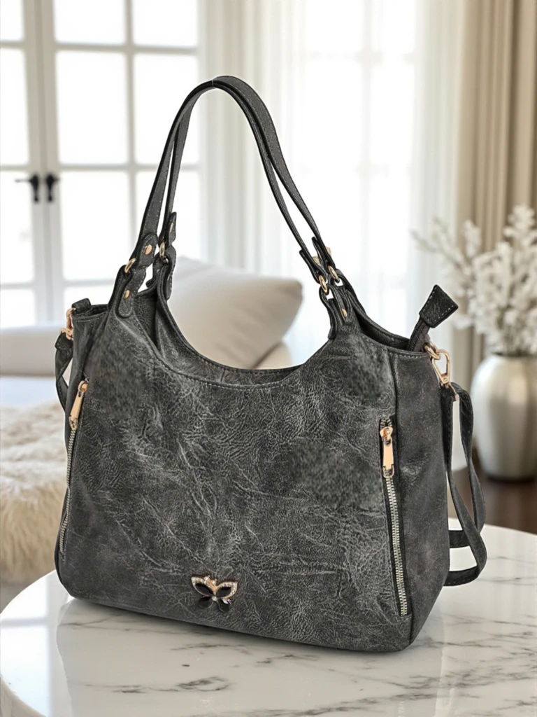 Чорна жіноча сумка Callista – це синонім елегантності та практичності в одному. Виготовлена зі старанно відібраної екологічної шкіри з делікатною фактурою, вона поєднує в собі високу якість із сучасним дизайном. Процес виробництва базується на передових техніках шиття та ретельному опрацюванні деталей, що гарантує довговічність і задоволення від використання. Екологічна шкіра, з якої виготовлена сумка, має сертифікати, що підтверджують її екологічність і безпеку для шкіри користувача. Дизайн Callista, натхненний класичною формою італійського дизайну, пропонує зручність носіння завдяки двом різним ручкам – на плече та навскіс, а також велику місткість (42x24x15 см), ідеальну для щоденного використання та роботи. Продумана організація внутрішнього простору включає кілька кишень на блискавці та функціональний основний простір, вистелений міцним матеріалом, забезпечуючи ідеальне місце для гаманця, телефону, косметики та інших необхідних дрібниць. Переваги сумки Callista: - Екологічна шкіра високої якості – матеріал з класичним, шляхетним виглядом, легкий у догляді та стійкий до пошкоджень. - Легка та містка – важить лише 2520 г і вміщує всі необхідні предмети щоденного вжитку. - Безпечне закривання на блискавку гарантує захист вмісту. - Декоративні деталі, такі як блискуча підвіска-метелик, додають витонченого шарму. Ідеї для стилізації: 1. Офіс і ділові зустрічі: поєднуйте з класичним жакетом і спідницею-олівець – Callista додасть професійного характеру стилізації. 2. Щоденні виходи: поєднайте з джинсами, футболкою та легким плащем – зручний і стильний варіант для покупок або прогулянки. 3. Вечірні зустрічі: підберіть до сукні та високих підборів – блискучі деталі підкреслять елегантність вбрання. Догляд і зберігання: Щоб сумка Callista служила роками, рекомендується регулярно протирати її вологою ганчіркою та уникати контакту з гострими предметами. Зберігайте її в сухому місці, використовуючи захисний мішечок. У разі сильних забруднень використовуйте делікатні засоби для чищення, призначені для екологічної шкіри. Модні тенденції: Сумка в глибокому чорному відтінку – це позачасовий аксесуар, який вписується в сучасні мінімалістичні та екологічні тренди. Мінімалізм, прості форми, делікатні прикраси та зручність використання – це елементи стилю, які домінують у найновіших колекціях світових дизайнерів. Модель Callista чудово підійде як для повсякденних, так і для більш елегантних стилізацій.