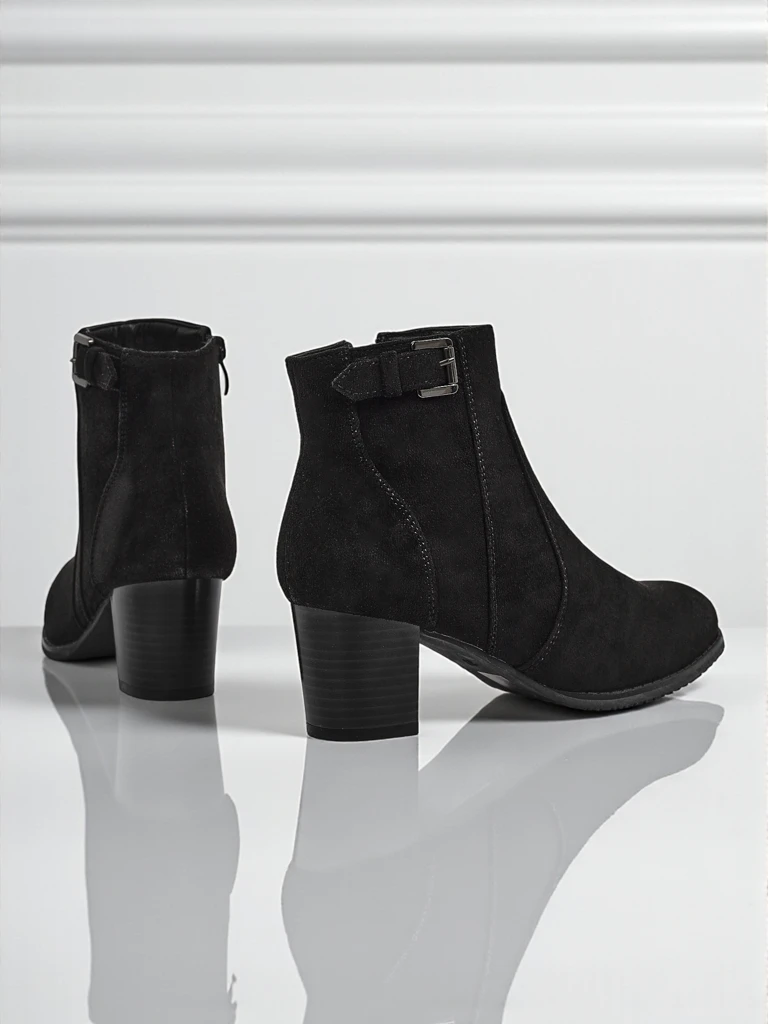 - Чудові жіночі ботильйони на підборах, виготовлені з еко замші. Внутрішня частина виконана з ніжного хутра. Модель застібається на блискавку. Мають декоративні пряжки. Ідеально підходять для осінніх образів!