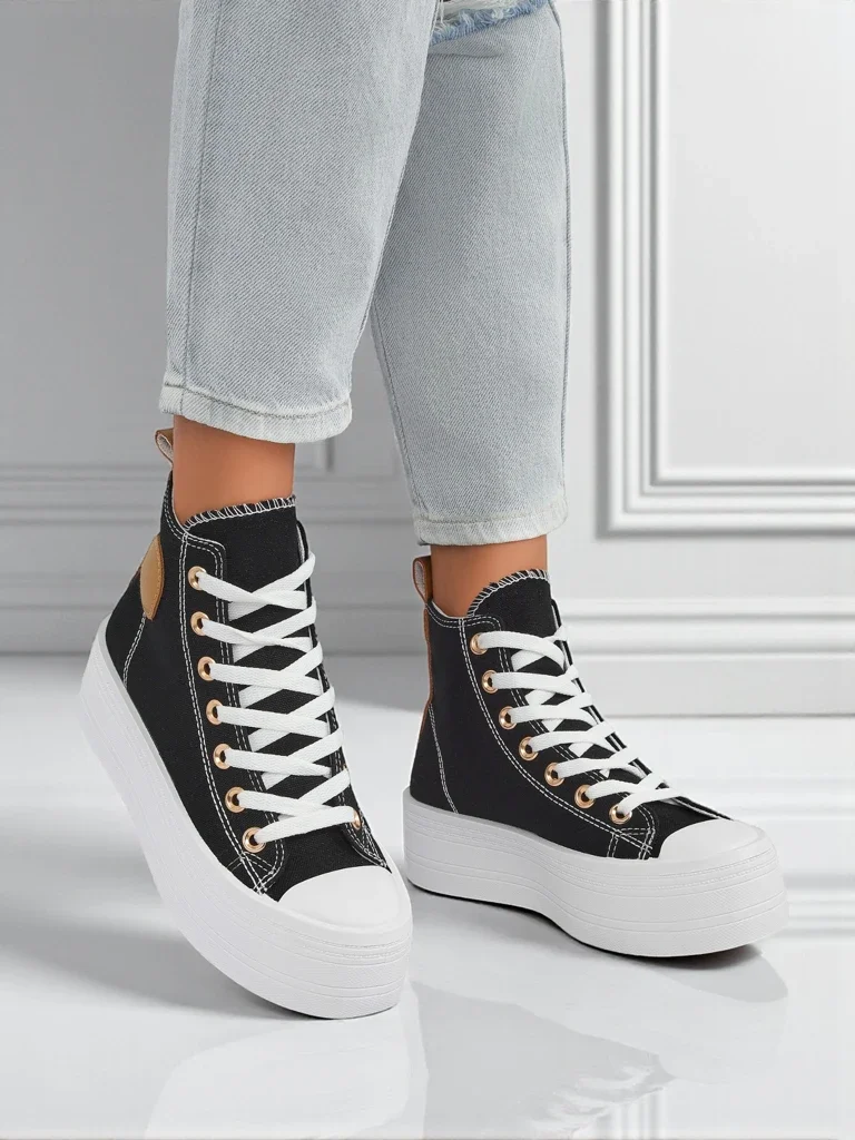 - Модні тканинні кеди на товстій підошві. Зручні, легкі та стильні – ідеальні для міських образів і повсякденного носіння. Комфорт і тренд в одному кроці.