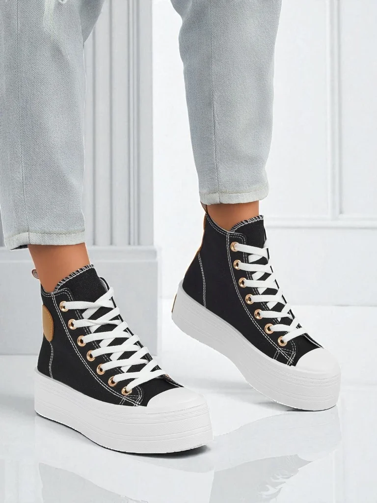 Жіночі кеди Callisto Nero на платформі, тканина, чорні, літо/осінь