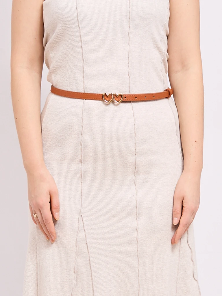 Тонкий жіночий ремінь для штанів casual з пряжкою у формі сердечок
