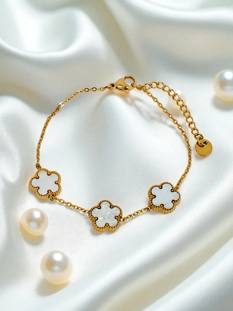 Браслет Aurelia Bianca з квітами у відтінку білої перлини, позолочений.