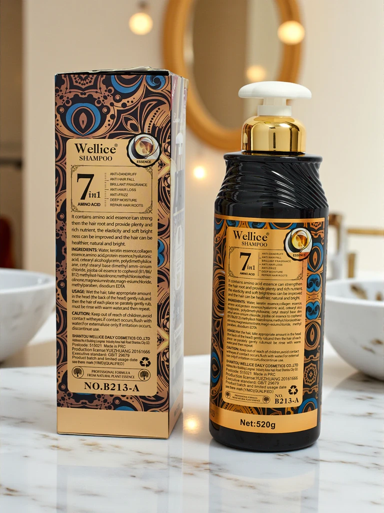 - Wellice Шампунь 7 в 1 для пошкодженого та сухого волосся з амінокислотами інтенсивно відновлює, зволожує та зміцнює волосся. Зменшує ламкість, надає блиск, розгладжує та полегшує розчісування, залишаючи волосся м'яким та здоровим.