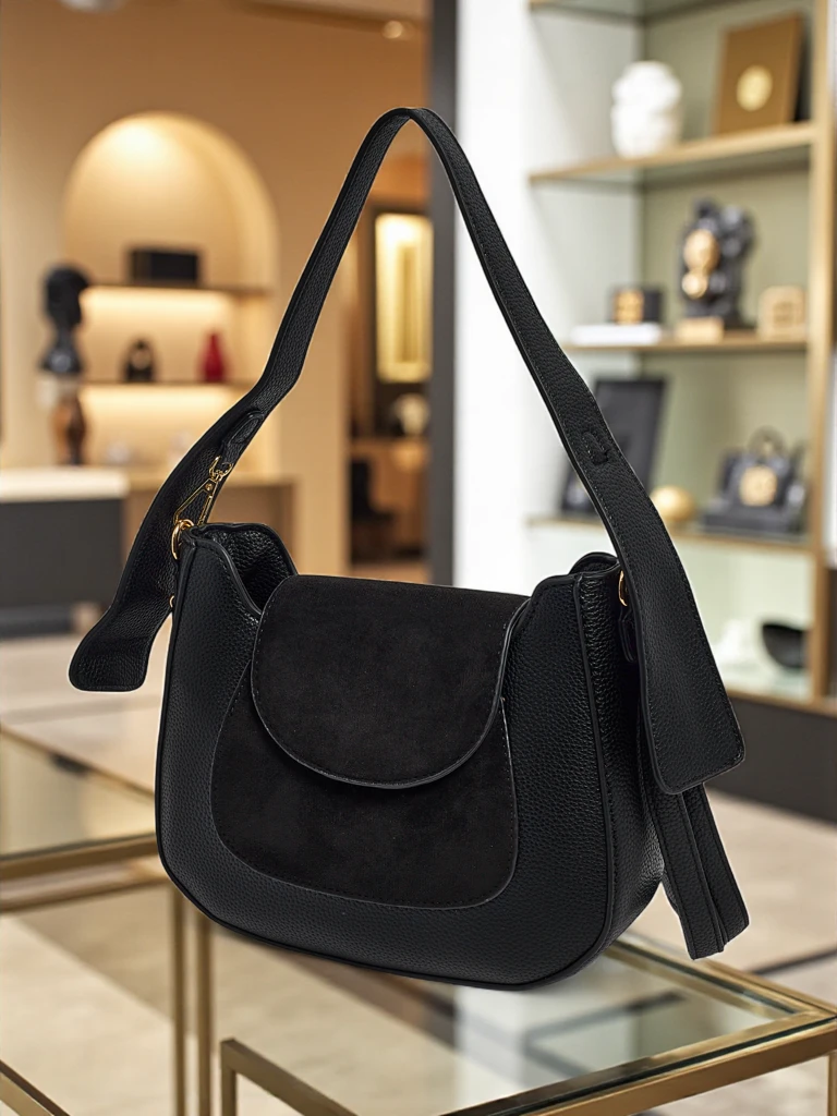 • Маленька сумочка з екошкіри та вставкою з екозамші. 1 відділення, регульований ремінець забезпечує зручність і стиль. Ідеальна для виходів – компактна форма, яка привертає увагу.