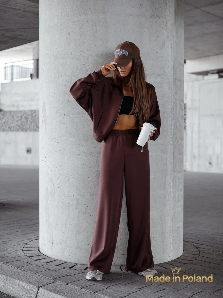 • Жіночий спортивний костюм, виготовлений з приємного віскозного матеріалу. Толстовка на блискавці. Довгі, широкі штани з гумкою на талії та штанинах, з 2 кишенями. Відчуйте стиль у цьому чудовому комплекті!
