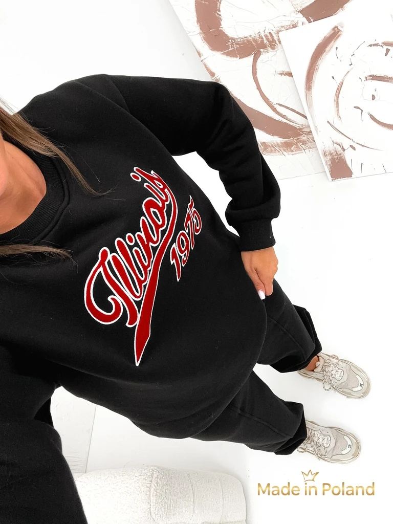 - Жіночий спортивний костюм, виготовлений з приємного бавовняного матеріалу. Толстовка з декоративними написами. Довгі штани з гумкою на талії та штанинах, з 2 кишенями. Відчуйте стиль у цьому чудовому комплекті!