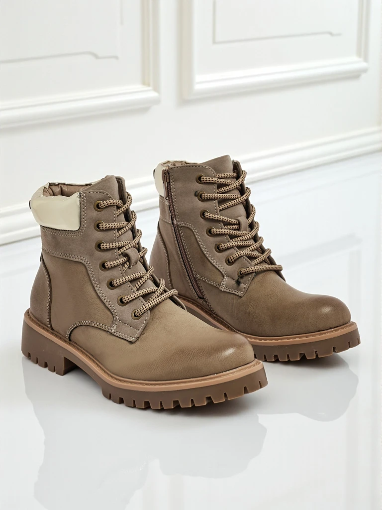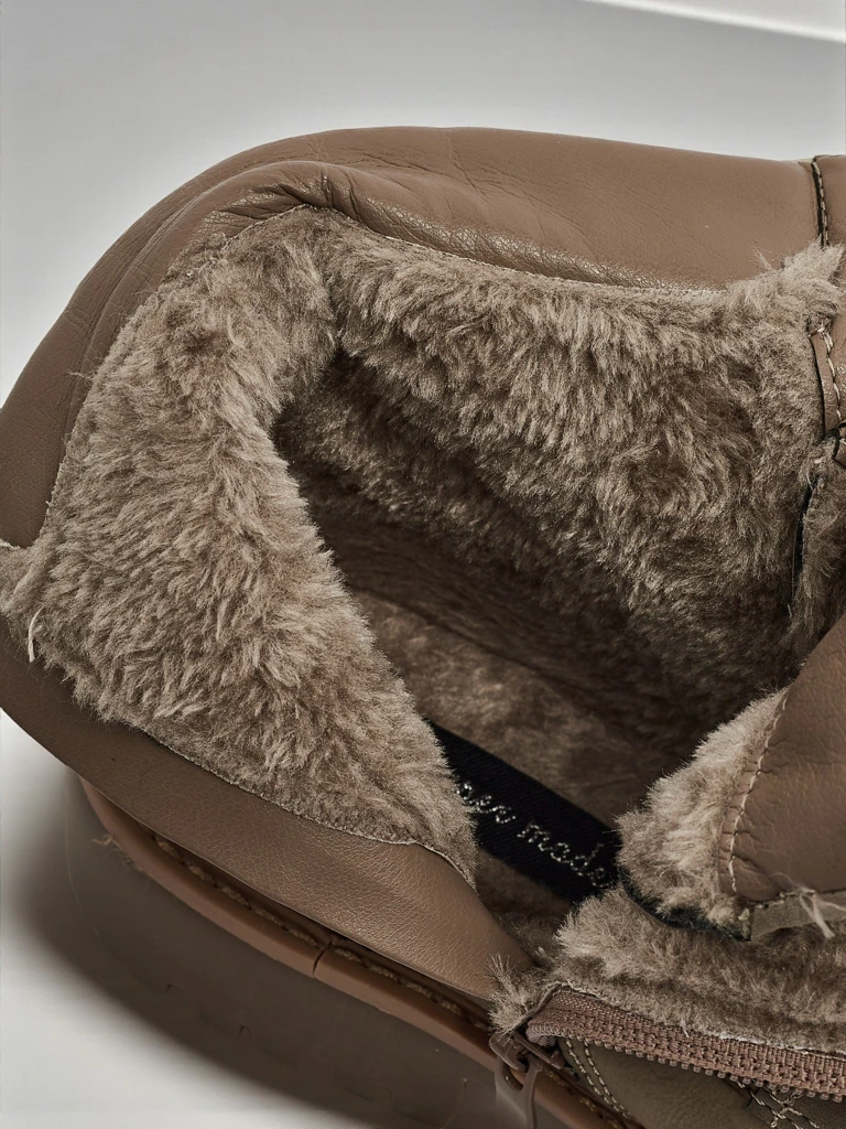 - Жіночі трекінгові черевики-трапери зі шнурованою халявою та бічною блискавкою. Матеріал виготовлення - екологічна шкіра. Внутрішня частина взуття утеплена хутром. Ідеально підходять для зимової пори!