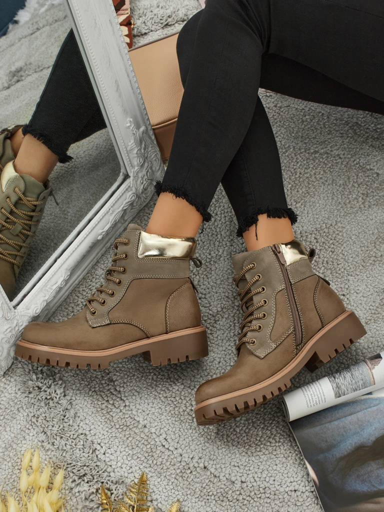 Ці ботильйони, з висотою каблука 4 см, чудово підійдуть для різних стилізацій. Основним матеріалом є екологічна шкіра, яка не тільки виглядає елегантно, але й є дружньою до навколишнього середовища. Стильна шнурівка в золотому кольорі додає характеру та оригінальності, що робить їх ідеальним вибором для багатьох випадків.