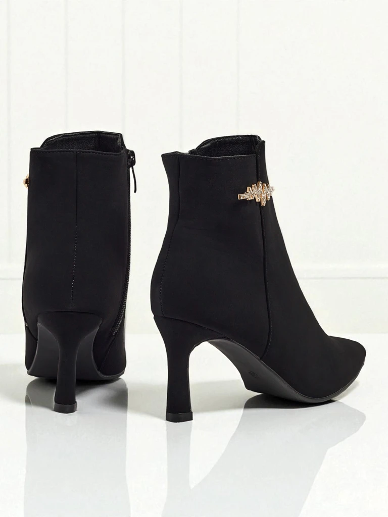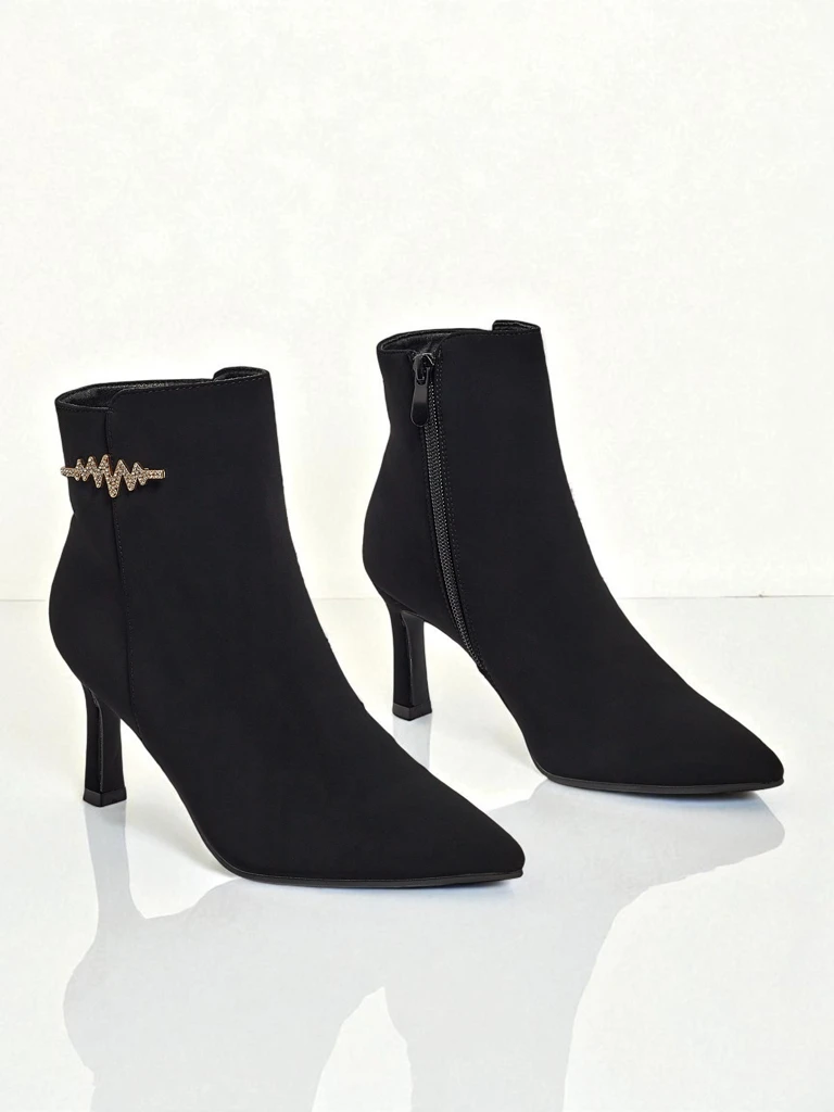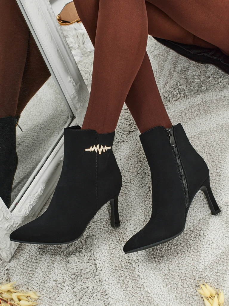 - Стильні жіночі ботильйони з матової екошкіри - це ідеальне рішення на прохолодні дні. Модель застібається на блискавку, має утеплення у вигляді хутра. Модель на шпильці та з гострим носком. Прикрашена елементом з цирконію.