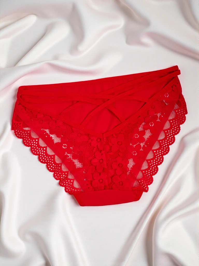 • Жіночі трусики-сліпи з мереживом та декоративними смужками – зручні та дихаючі. М'яка тканина поєднується з ніжним мереживом, створюючи поєднання комфорту та жіночого стилю.