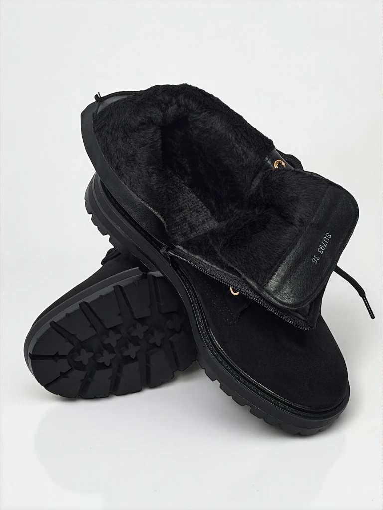 - Жіночі трекінгові черевики-трапери зі шнурованою халявою. Матеріал виготовлення - екологічна замшева шкіра. Усередині утеплені ніжним хутром. Ідеальні для зимової пори!