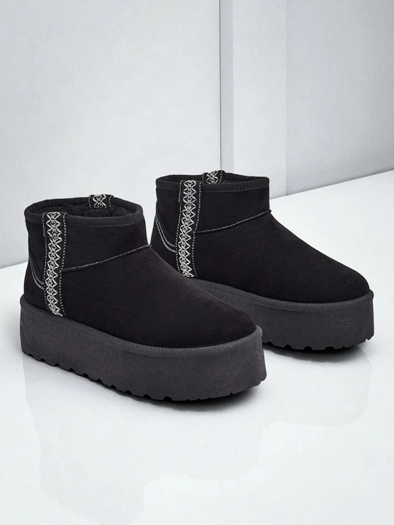• Чудові жіночі зимові черевики-снігоходи на товстій підошві типу платформа. Верх виготовлений з екологічної замшевої шкіри, середина утеплена хутром. Ідеальна база на зиму!