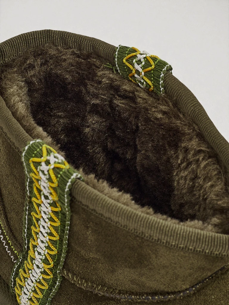• Чудові жіночі зимові черевики-снігоходи на товстій підошві типу платформа. Верх виготовлений з екологічної замшевої шкіри, середина утеплена хутром. Ідеальна база на зиму!