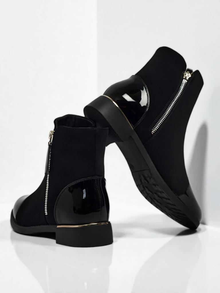 Ботильйони Luna - це пропозиція, створена для жінок, які шукають елегантне та функціональне взуття на осінь. Завдяки своєму мінімалістичному дизайну та поєднанню екологічної шкіри патентної з матовою шкірою, ці ботильйони ідеально вписуються в актуальні модні тенденції.