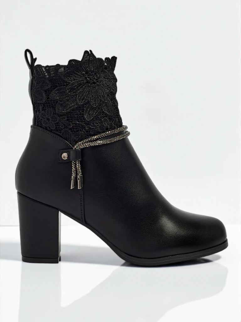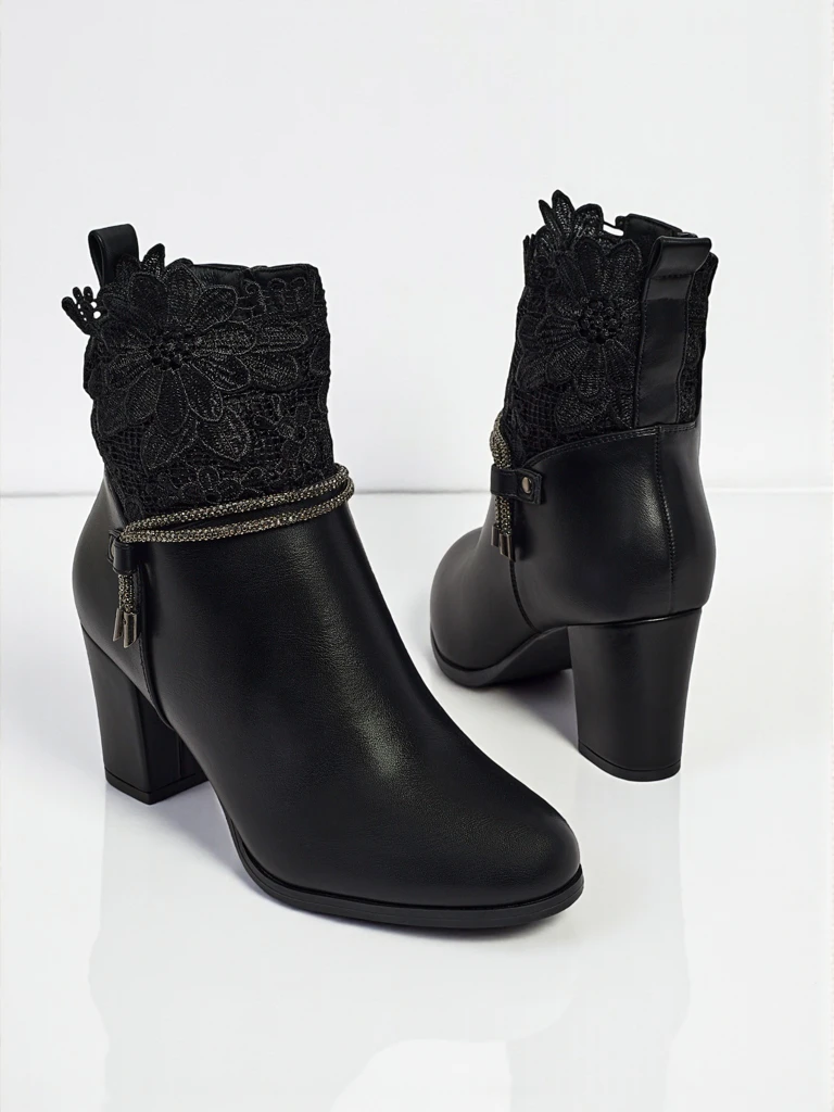 Botki Luna to doskonały wybór dla kobiet, które cenią sobie elegancję oraz komfort. Stworzone z myślą o codziennym noszeniu, sprawdzą się doskonale na różne okazje, od wieczornych wyjść po formalne spotkania. Ich klasyczny czarny kolor oraz atrakcyjne wykończenie z koronkowym detalem sprawiają, że są niezwykle stylowe.