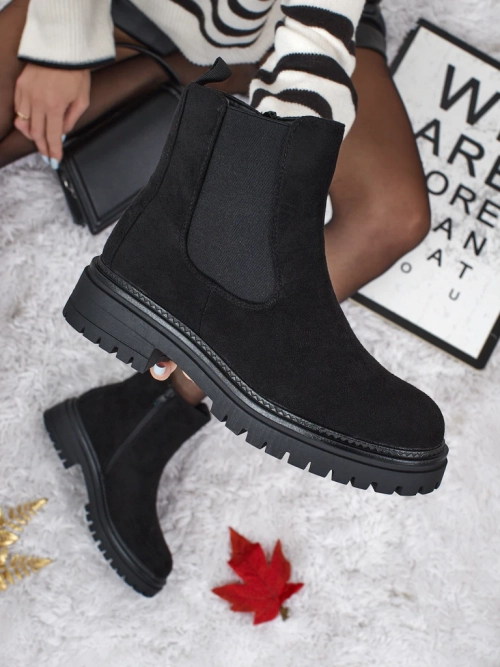 - Гарні та класичні ботильйони a'la челсі на товстішій підошві, виготовлені з екологічної замшевої шкіри. Всередині утеплення у вигляді делікатного хутра. Чудова база для осінніх стилізацій!