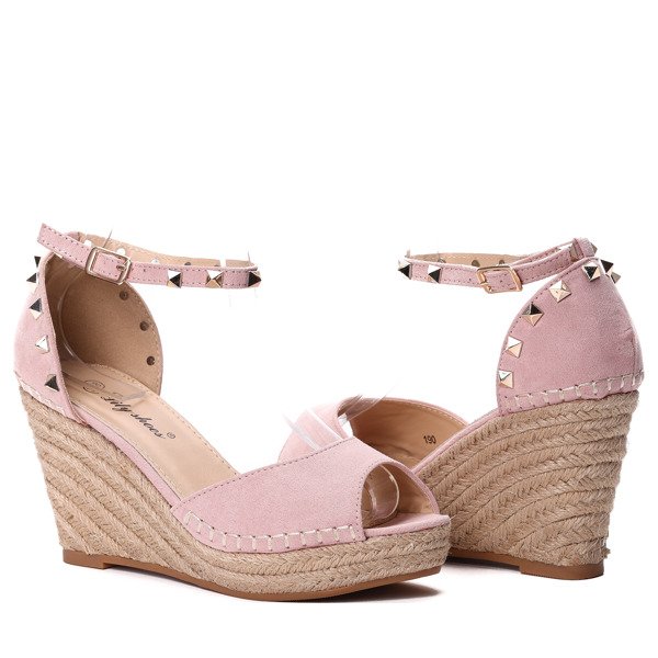 Różowe sandałki na koturnie - Obuwie