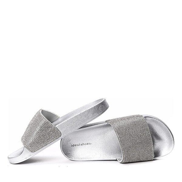 • Świetne klapki ozdobione cyrkoniami. Obuwie wykonane z tworzywa gumowego. Idealne na cieplejsze dni!.