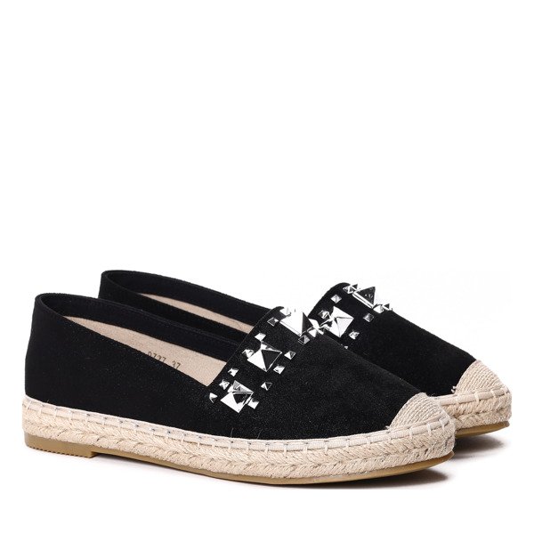 - Wygodne espadryle wykonane z ekologicznego zamszu. Cholewka ozdobiona srebrnymi ćwiekami. Wkładka z tkaniny. Idealnie nadadzą się do wiosennych stylizacji!