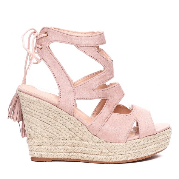 • Sandałki na koturnie wykonane z ekologicznego zamszu. Cholewka z wycięciami. Obuwie wiązane w tylnej części sznureczkami, które zakończone są frędzelkami. Podeszwa zdobiona sznurkiem jutowym. Sprawdzą się idealnie jako dodatek do sukienek!