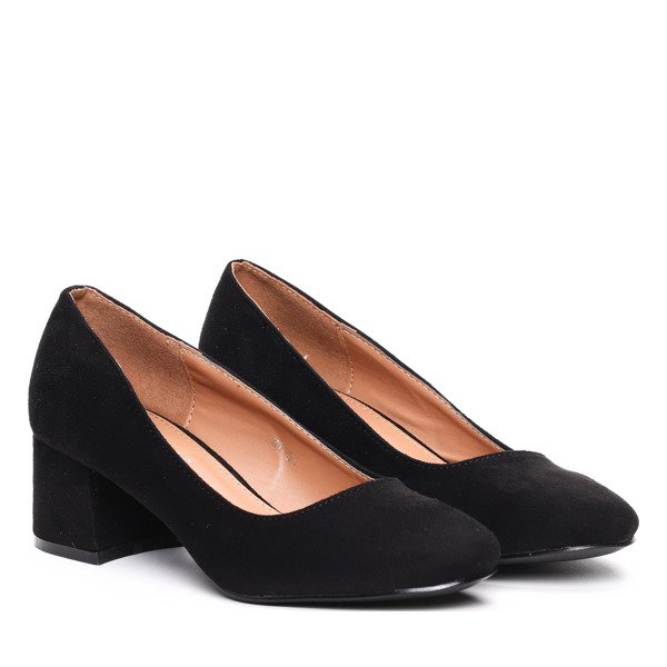 Czarne czółenka na niskim słupku- Obuwie
