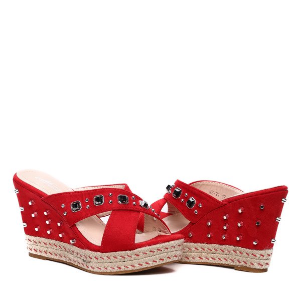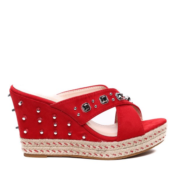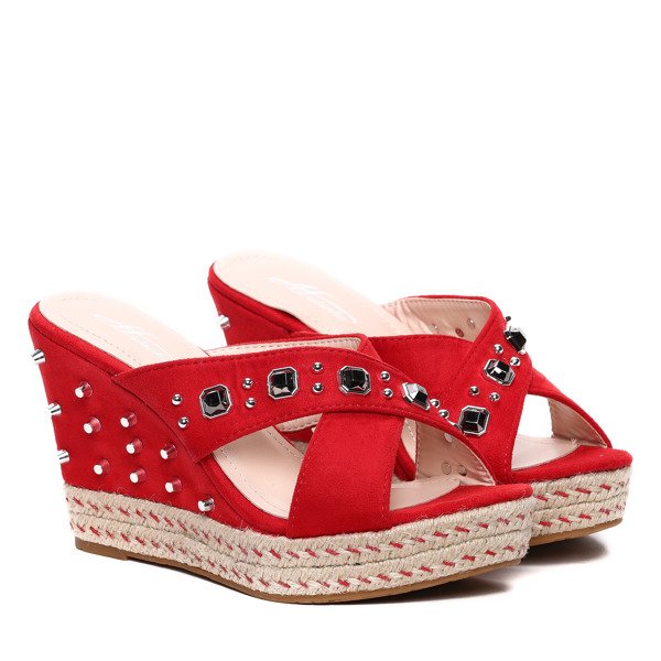 Czerwone klapki na koturnie- Obuwie