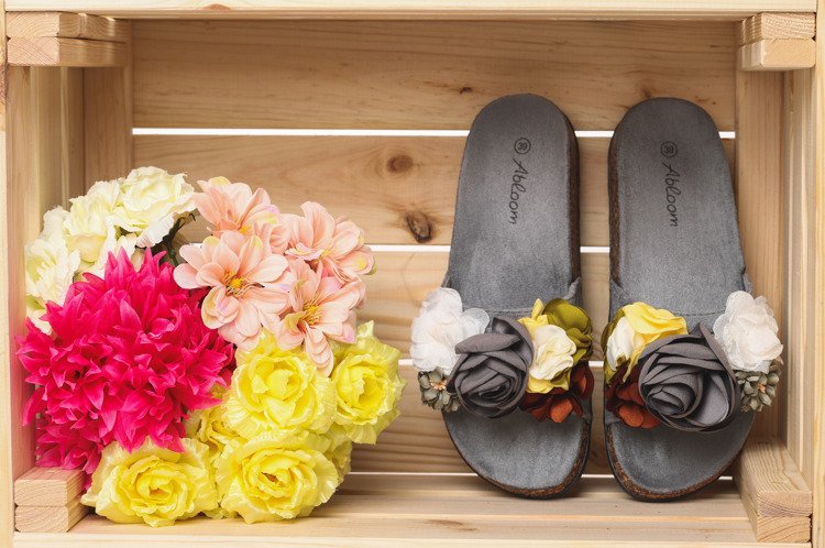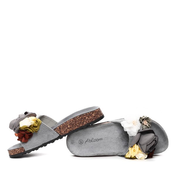 Szare klapki z kwiatkami Leslie- Obuwie