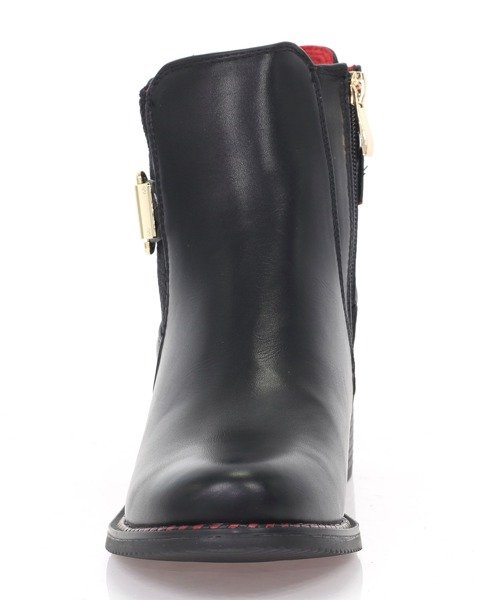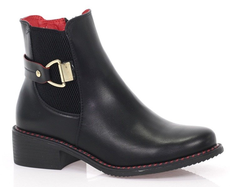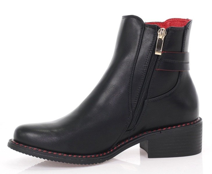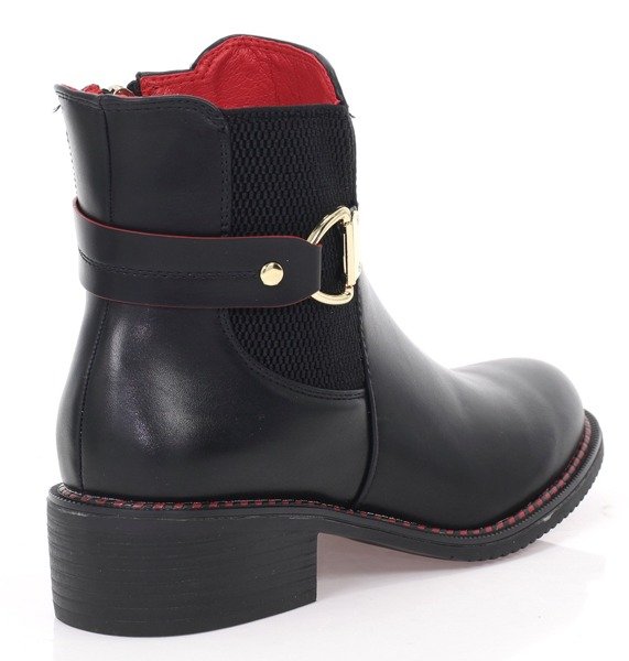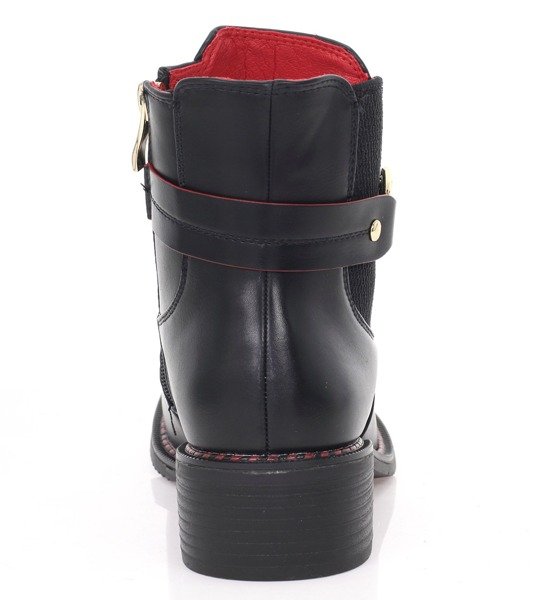 Czarne botki z czerwonym obszybciem - Obuwie