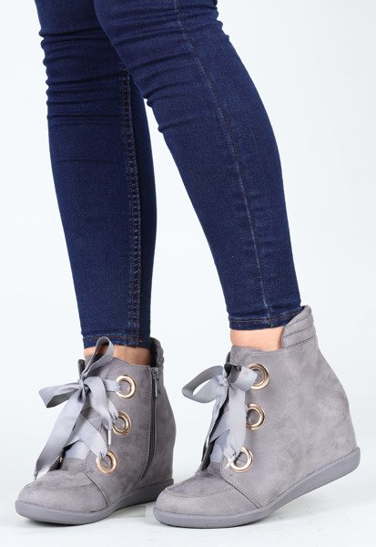 Szare sneakersy wiązane wstążką Andi- Obuwie