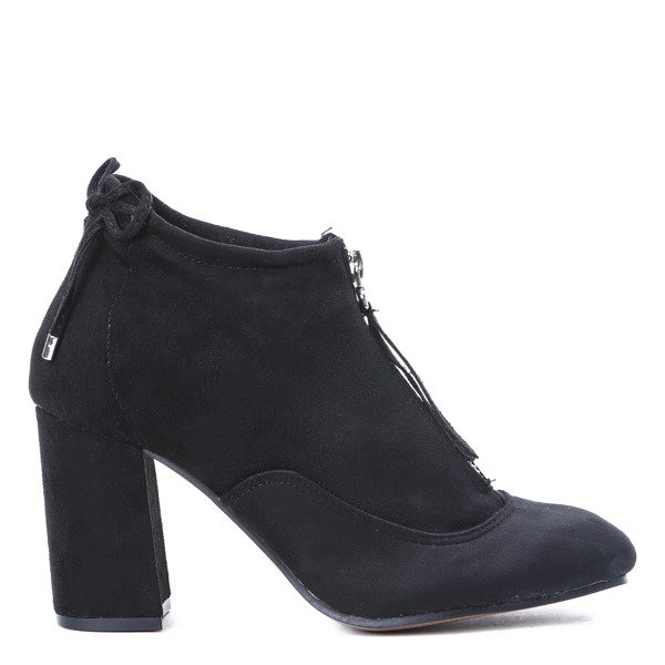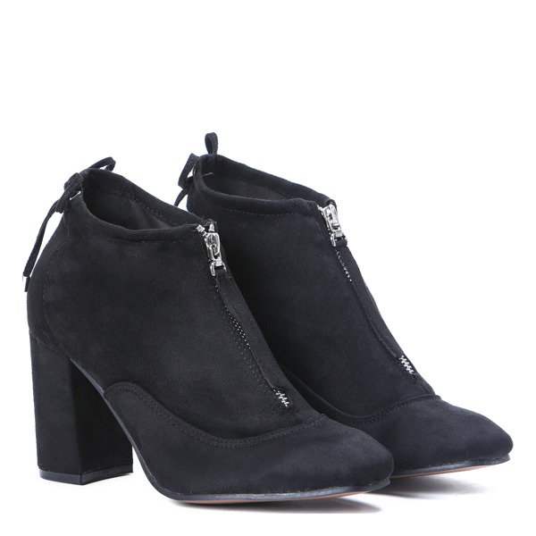 - Eleganckie botki na słupku wykonane z zamszu ekologicznego. Model wsuwany i zapinany na suwak z przodu. Brak ocieplenia. Idealny dodatek do spodni!