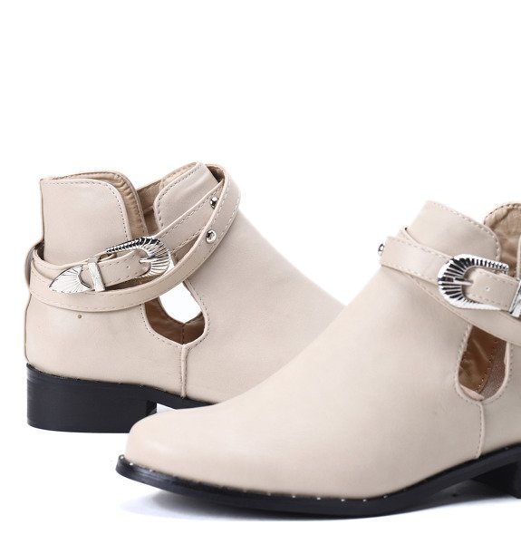 • Niesamowite botki z wycięciami wykonane ze skóry ekologicznej. Cholewka zdobiona paseczkiem z klamrą. Stanowią idealne połączenie ze spodniami!