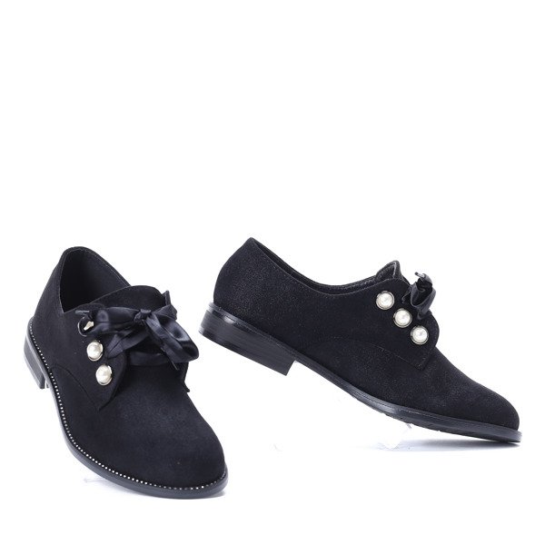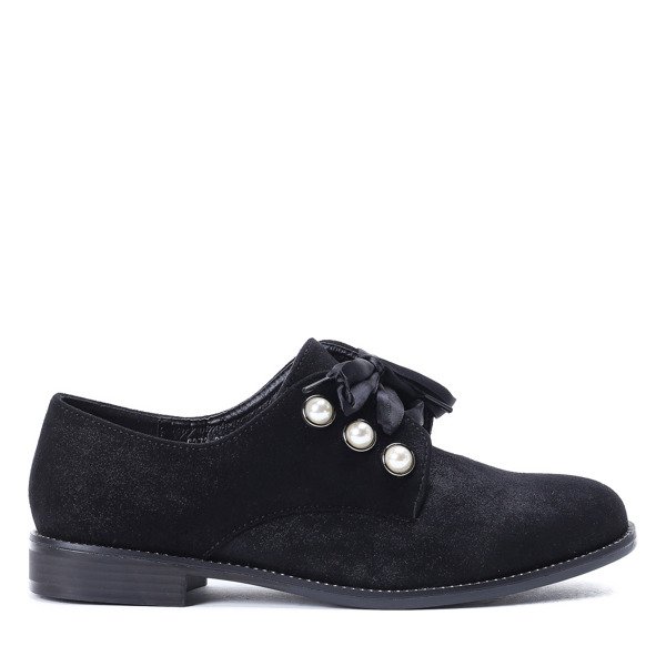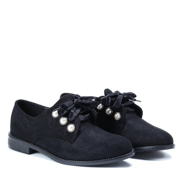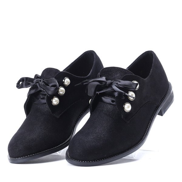 - Rewelacyjne półbuty wykonane z ekologicznego zamszu. Wkładka pokryta skórą ekologiczną. Cholewka zdobiona perełkami, a wokół podeszwy cyrkonie. Model wiązany wstążką. Stanowią idealne połączenie ze spodniami!