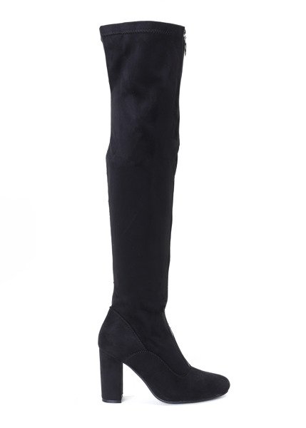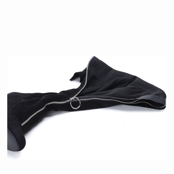• Елегантні довгі черевики на стійці з екологічної шкіри замші. Модель застібається на блискавку спереду. Взуття ідеально підійде для повсякденного та вечірнього одягу.