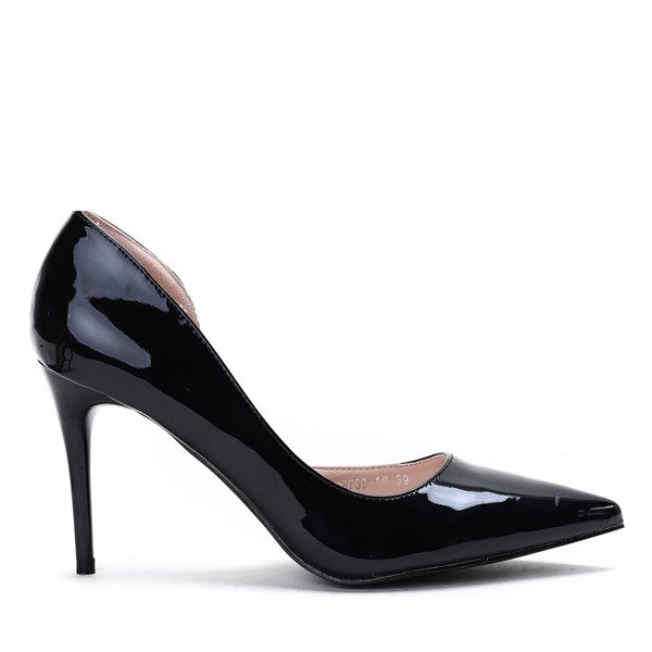 - Eleganckie szpilki wykonane ze skóry ekologicznej lakierowanej. Nosek typu szpic. Model posiada wycięcie po wewnętrznej stronie cholewki. Idealnie się sprawdzą na co dzień jak i na wieczór.