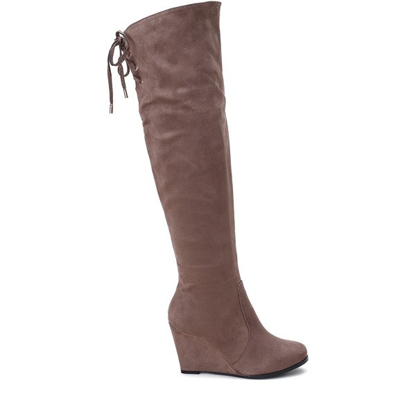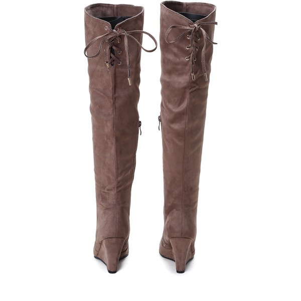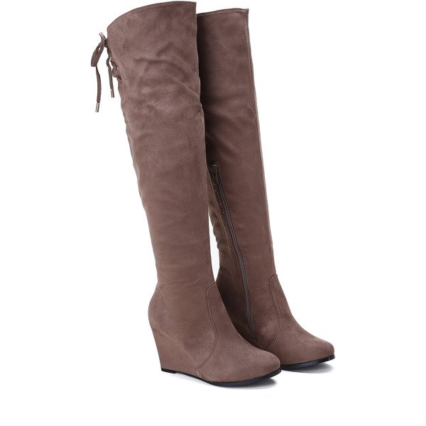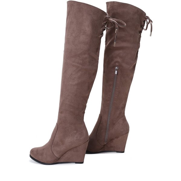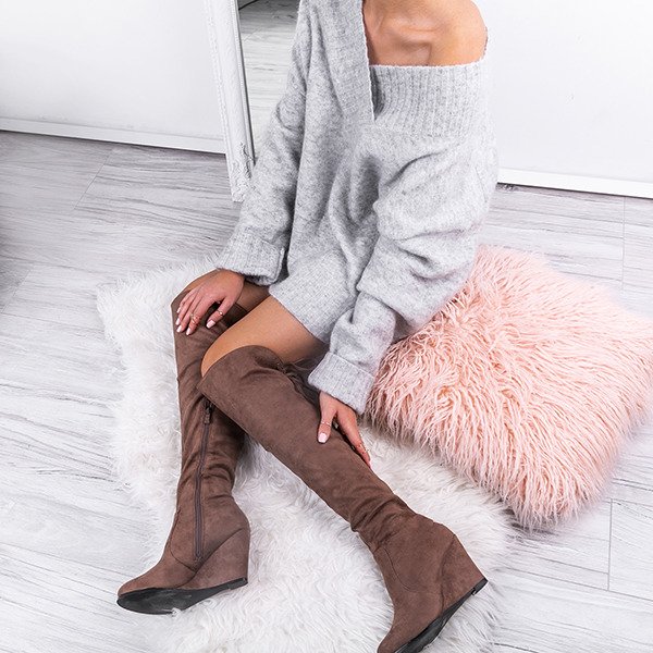 Brązowe kozaki na koturnie Aileen - Obuwie