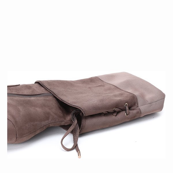 - Długie kozaki na koturnie wykonane ze skóry ekologicznej zamszowej. Model zapinany suwakiem po boku. Posiadają z tyłu sznureczek, którym można regulować szerokość górnej części cholewki. Idealne na co dzień jak i na wieczór.