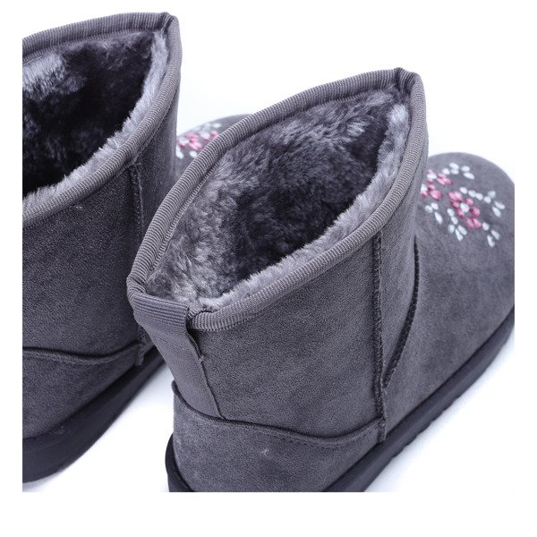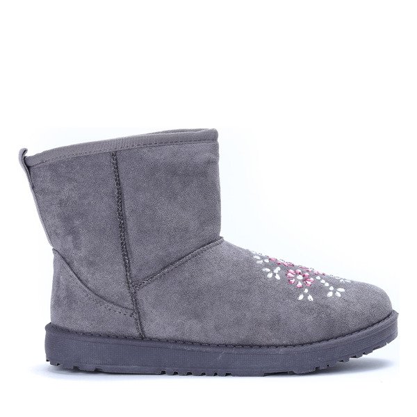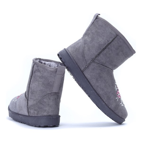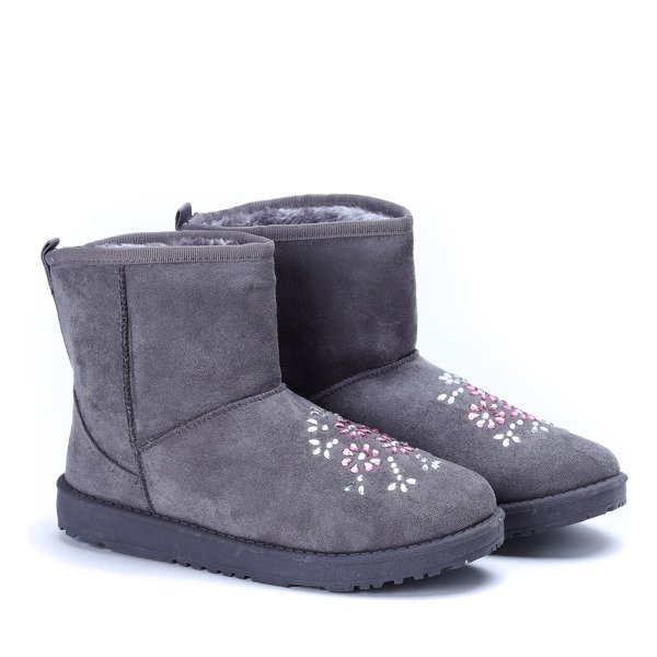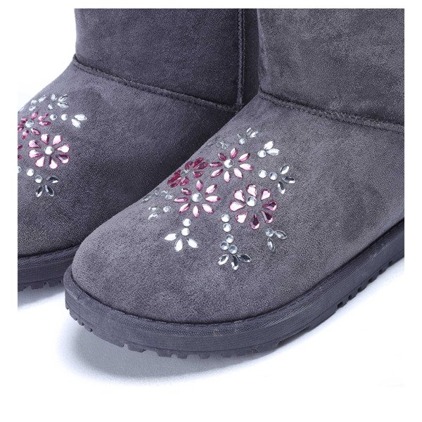 - Неймовірно зручні снігові черевики з екологічної шкіри замші. Вони мають внутрішню хутряну ізоляцію. Ніс прикрашений фіанітом.