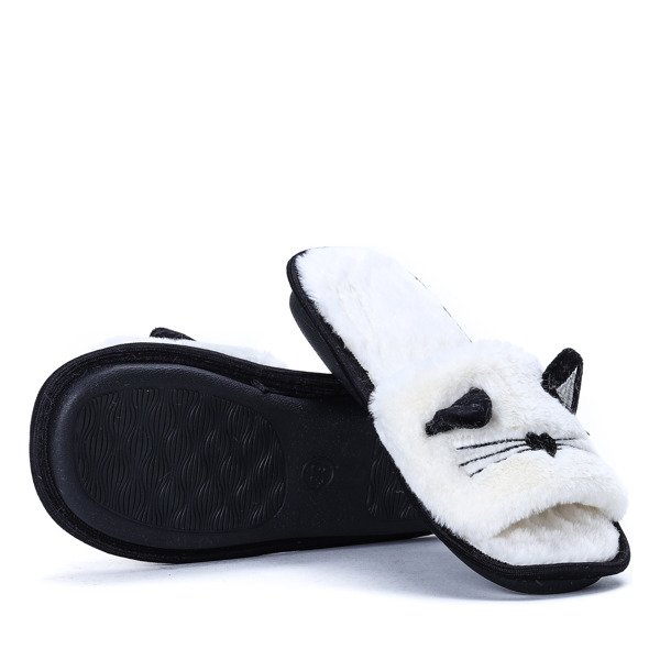 - Urocze kapcie wykonane z ciepłego futerka. Paseczek zdobiony kocimi uszami oraz wąsami. Buty mięciutkie oraz bardzo wygodne.
