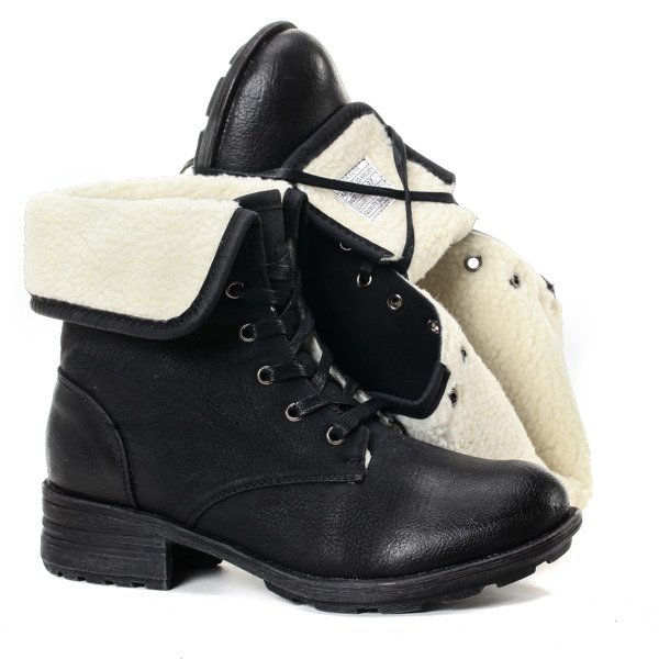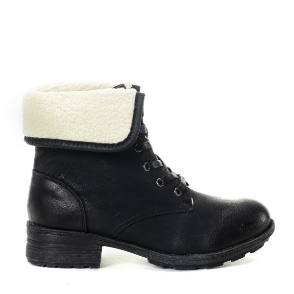 Czarne workery z kożuszkiem - Obuwie