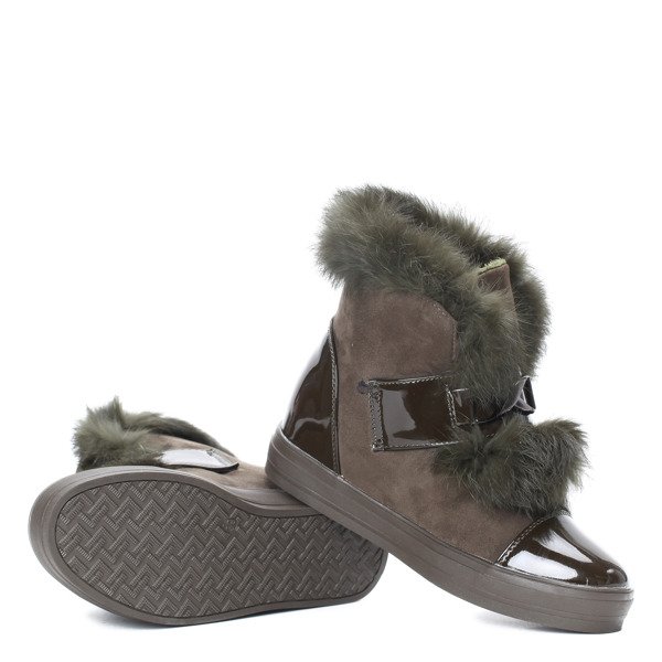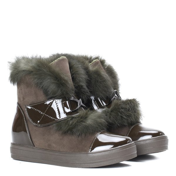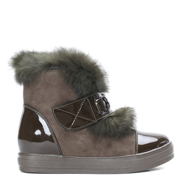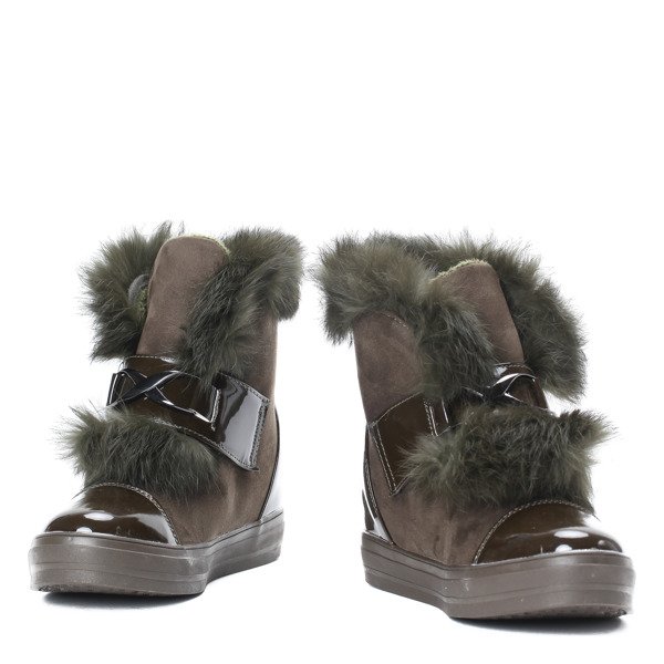 Ocieplane botki - kolor khaki - Obuwie