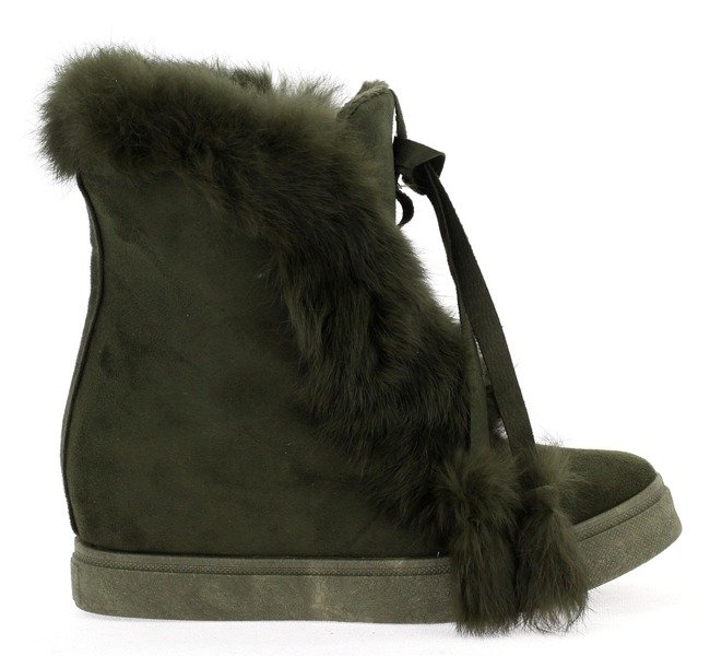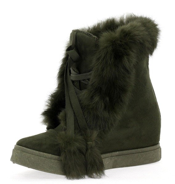 • Fantastyczne sneakersy ozdobione puszystym futerkiem i pomponikami. Dzięki sznurowaniu łatwo dopasowują się do nogi. Posiadają koturn i delikatne ocieplenie. Solidnie wykonane i bardzo wygodne. Nadają się do wielu oryginalnych stylizacji.